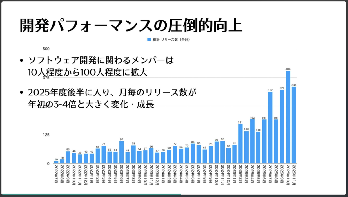 2024年末までは月の平均70件強だったものが、2025年11月には400件を越える何かしらのリリースを行なっています。